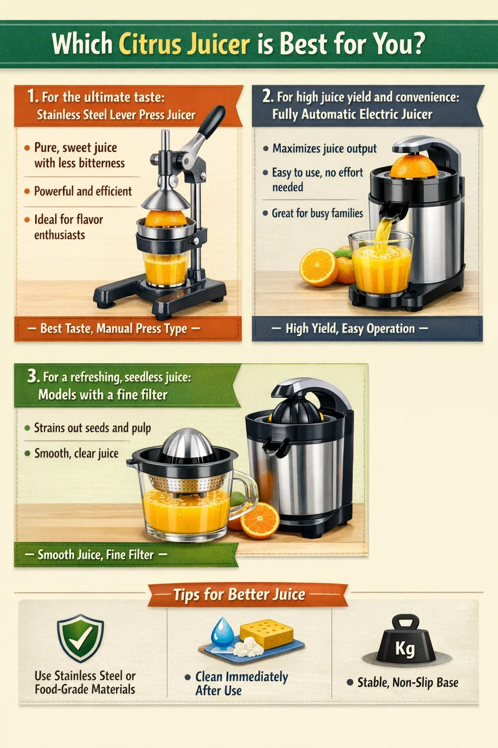 برای استخراج آب میوه تازه و با طعم خالص، انتخاب مناسب آب میوه گیری مرکبات حیاتی است. ماشینهای زیادی در بازار وجود دارد، اما اینکه کدام یک "بهترین" است واقعاً به نیازهای شما برای "خوشمزه بودن" و "بافت" بستگی دارد.